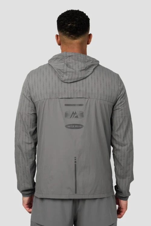 Engineered for performance, this jacket features stretch woven fabric with ripstop stretch panels, mesh lining with a back vent, reflective branding, and secure zip pockets for optimal comfort and utility.