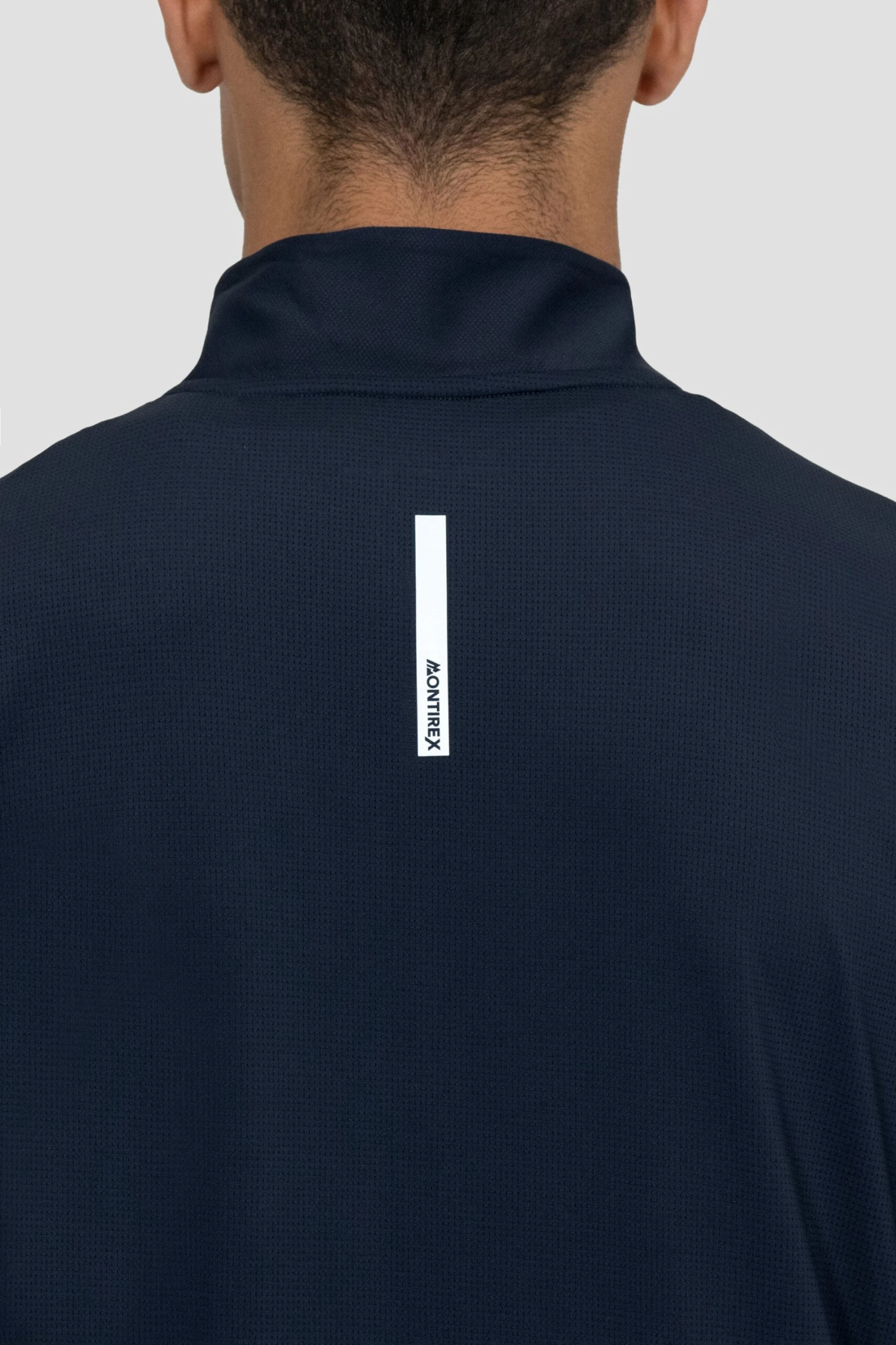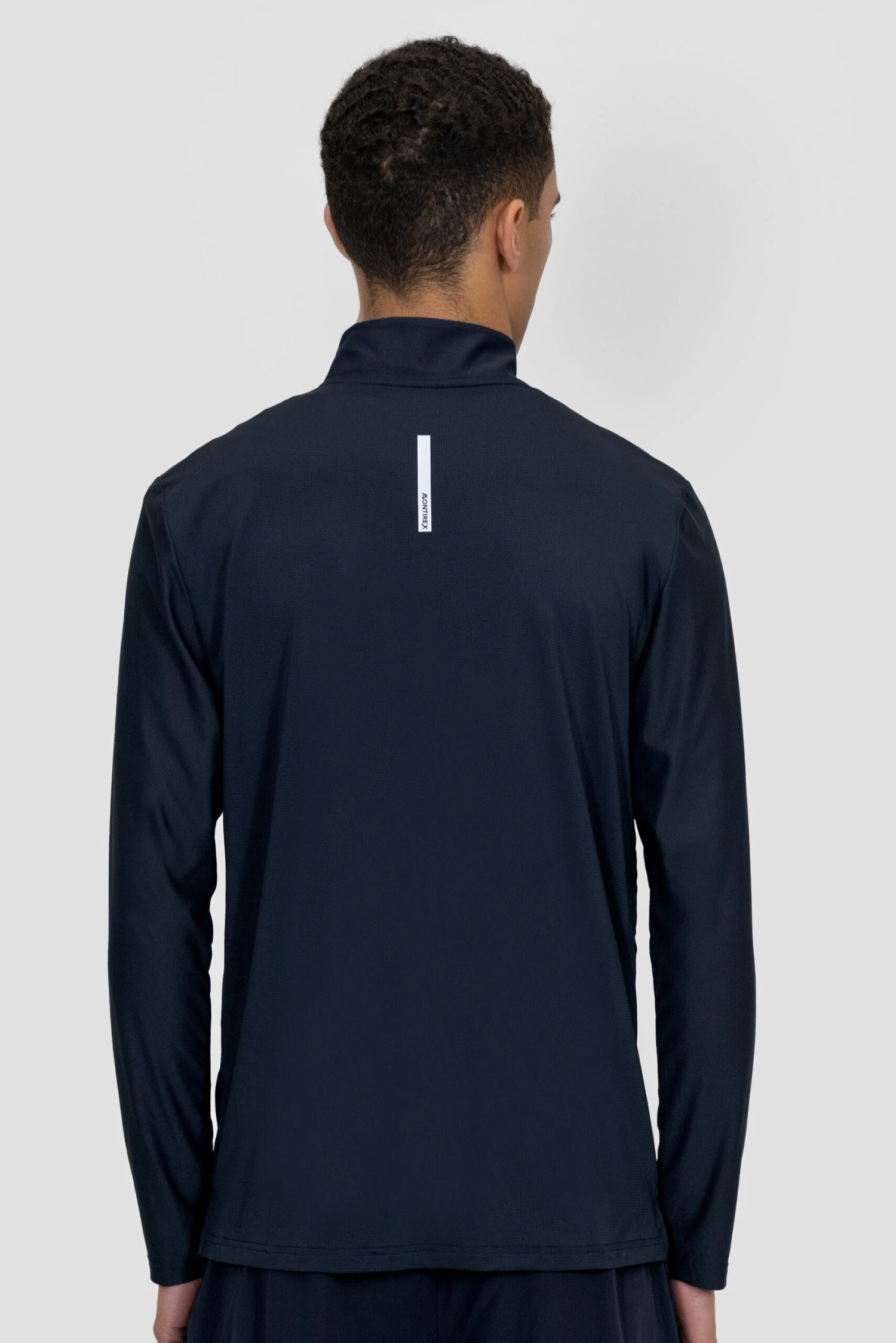 The Charge 1/4 Zip in Midnight Blue offers a standard fit for a comfortable and flattering look. The reflective detailing adds visibility for outdoor activities, while the lightweight breathable fabric keeps you cool and dry. Stay stylish with the contrast perforated back panel.