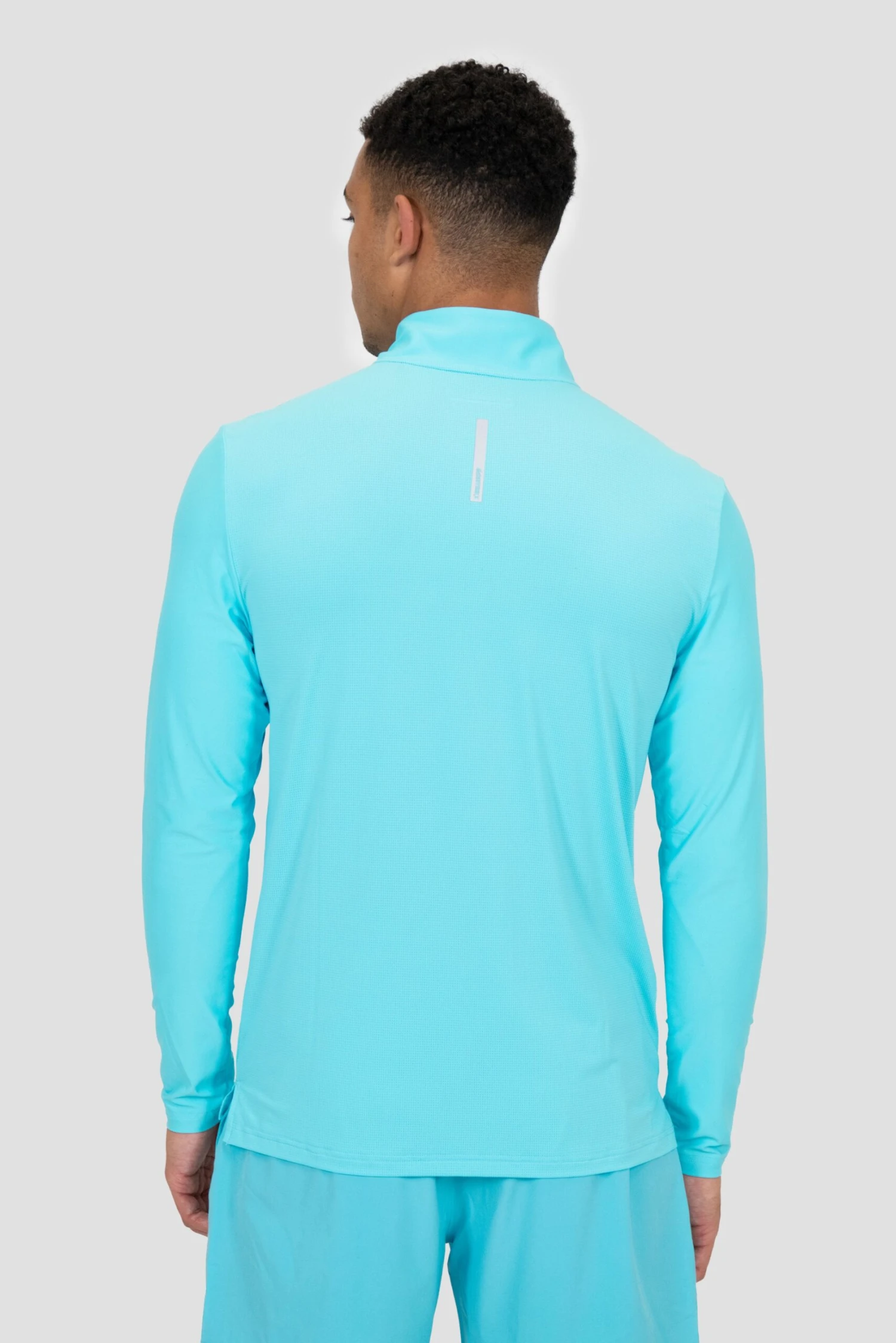 The Charge 1/4 zip in Neon Sky offers a standard fit for comfort and reflective detailing for increased visibility during low light activities. Made with a lightweight and breathable fabric, this zip-up also features a contrast perforated back panel for added breathability.