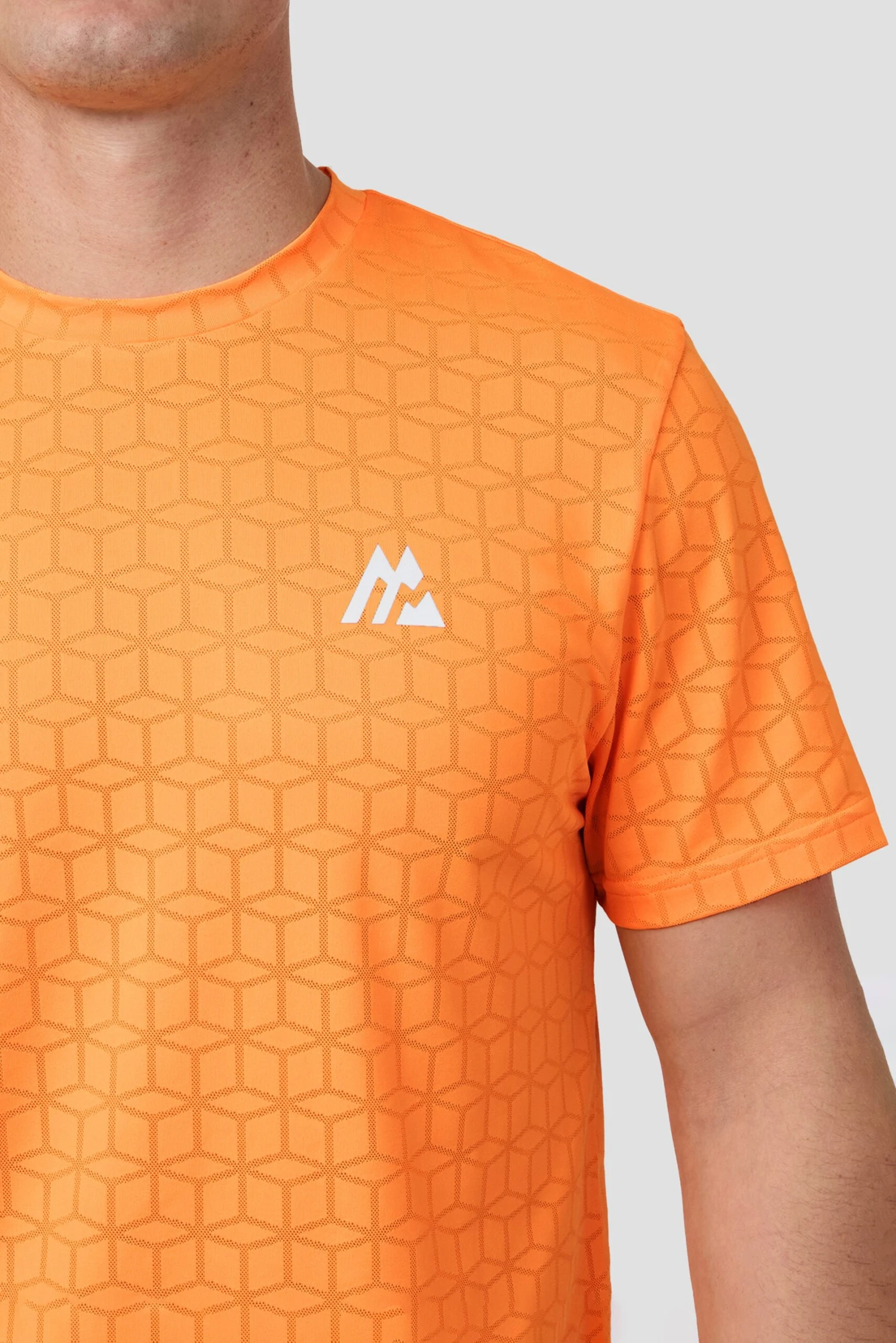 Elevate your activewear with this expertly crafted jacquard fabric t-shirt, featuring a standard fit, breathable design, and reflective logo detail for enhanced visibility.