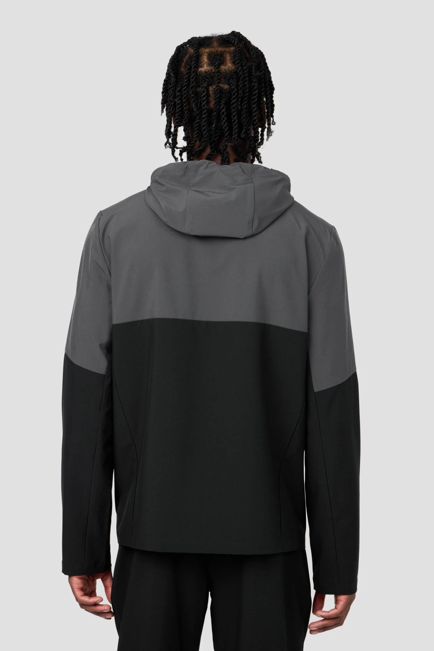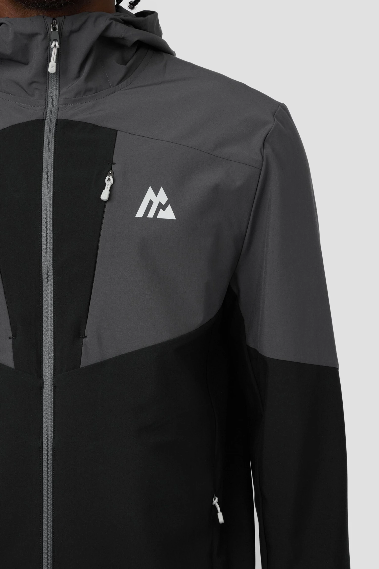 Engineered for performance and style, this jacket features stretch woven fabric, contrast panel design, and reflective bungee hood. Multiple zip pockets offer secure storage for essentials.