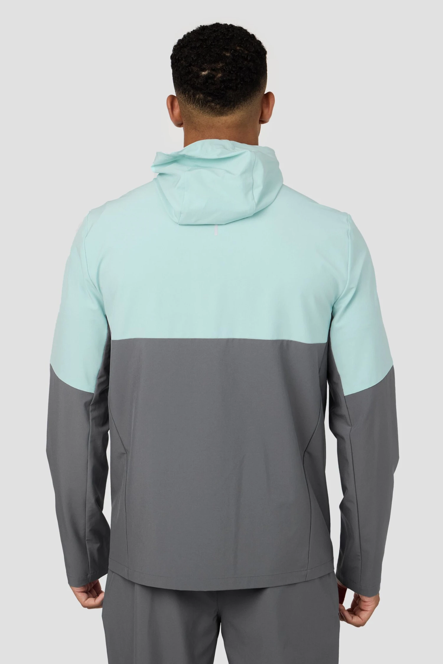 Engineered for performance and style, this jacket features stretch woven fabric, contrast panel design, and reflective bungee hood for enhanced visibility. Secure essentials with zip chest and lower pockets.