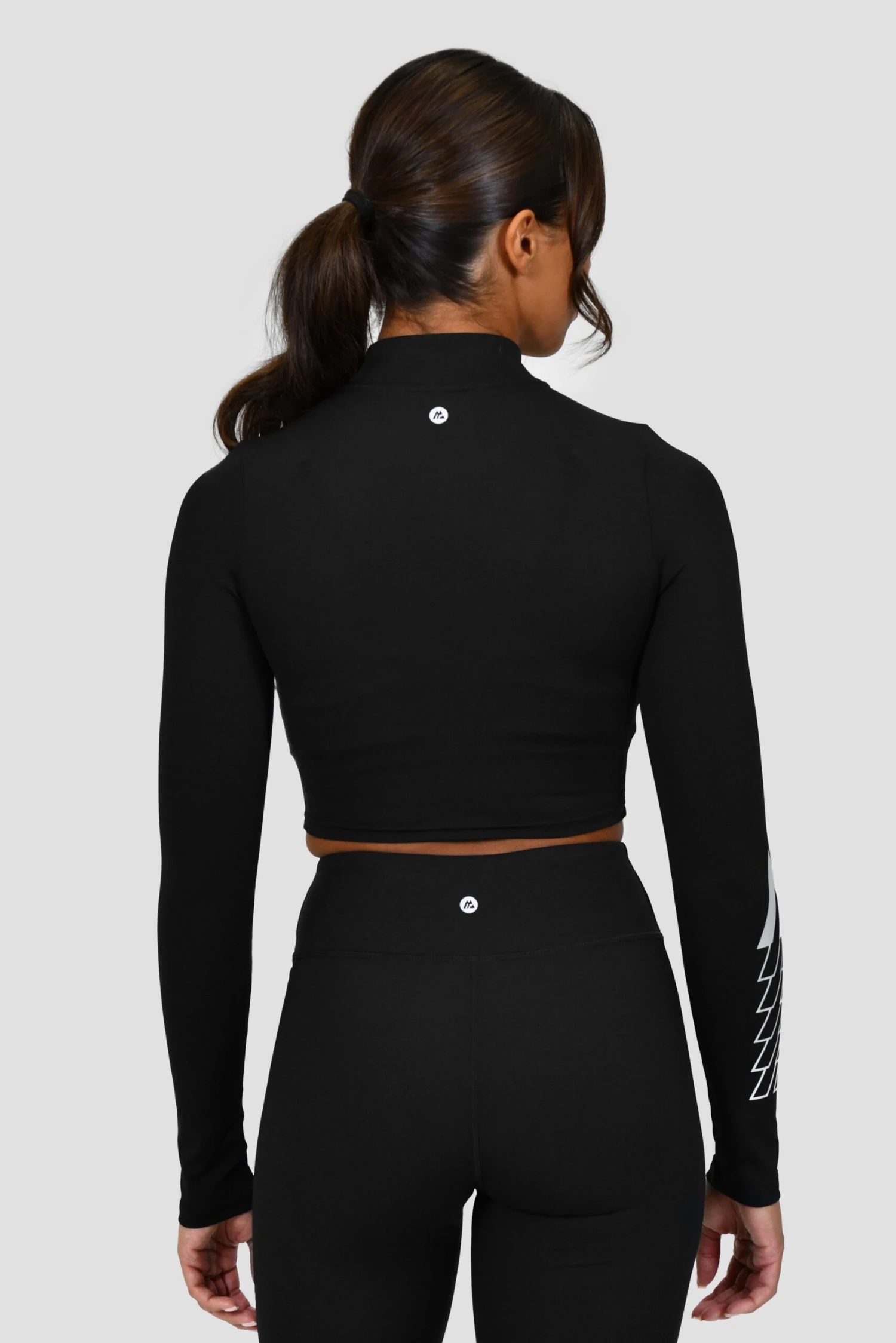 This women’s Limit 1/4 Zip in Black/Pearl Grey offers a standard fit with high brand contrast logo for a professional look. With 4-way stretch fabrication, it provides maximum flexibility and comfort for any activity. Perfect for an active lifestyle.
