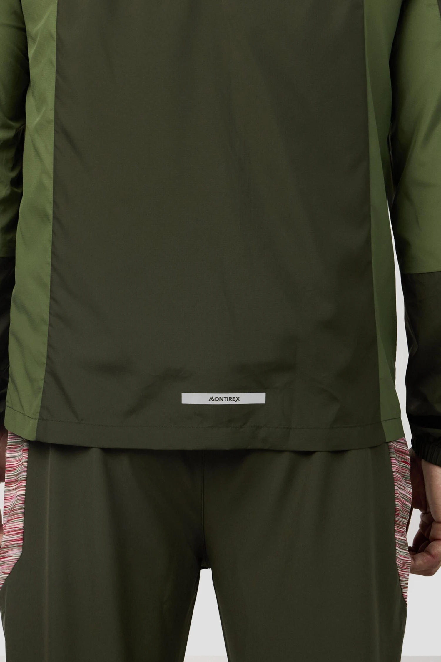 Engineered for performance, this standard fit jacket features reflective detailing, a weather-resistant DWR trail panel, front zip pockets, and an adjustable hood for versatile protection on the move.