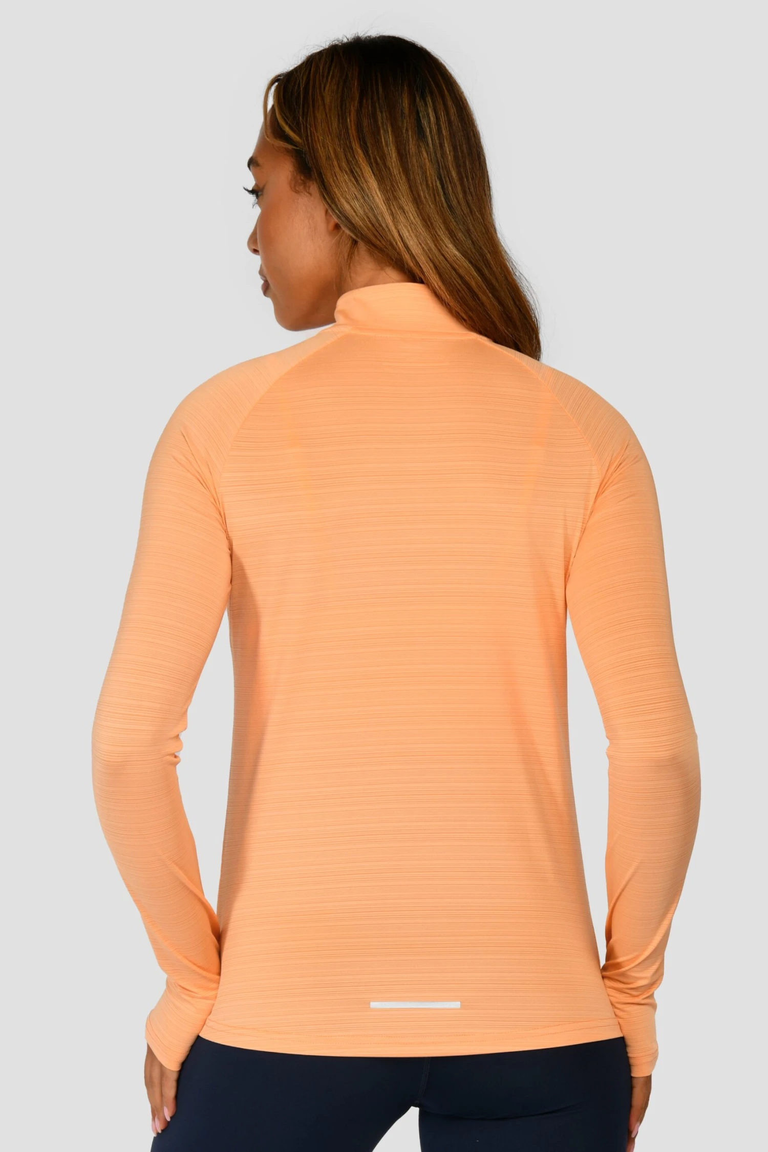 The Women’s Draft 1/4 Zip in Sunset Peach offers a standard fit with reflective detailing for added safety. The thumb hole sleeve cuff provides comfort and the lightweight, breathable fabric keeps you cool during any activity. Stay stylish and functional with this must-have piece.